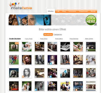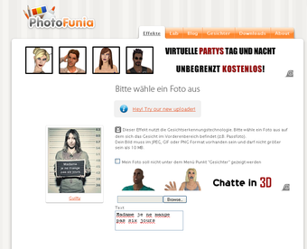 Mit dem kostenlosen Webdienst Photofunia verfremdet man Gesichter in allen möglichen Arten. Der Online-Bildbearbeiter passt die von den Nutzern hochgeladenen Portraitfotos in vorhandene Vorlagen ein und erstellt mehr oder weniger kunstvolle oder lustige Fotomanipulationen.